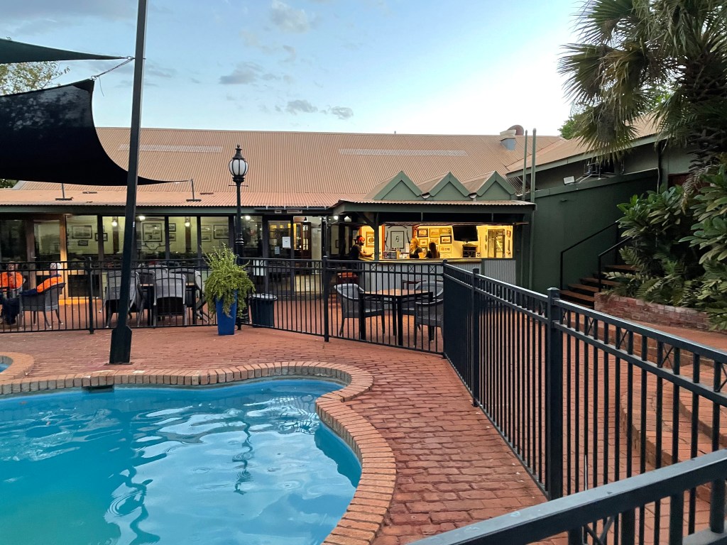 At the car park entrance of the Sports Bar of the Kimberley Hotel, Jimmy, one of the guards, presents like a metal guitarist ready to hit the stage. In his heart, that’s probably what he wants to be.